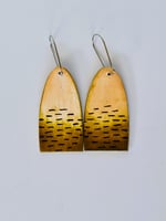 Contemporary and colourful handmade and hand painted earrings for a bit of bright and light hearted fun. Each little piece of art has layers of colour and varnished to a satin sheen.