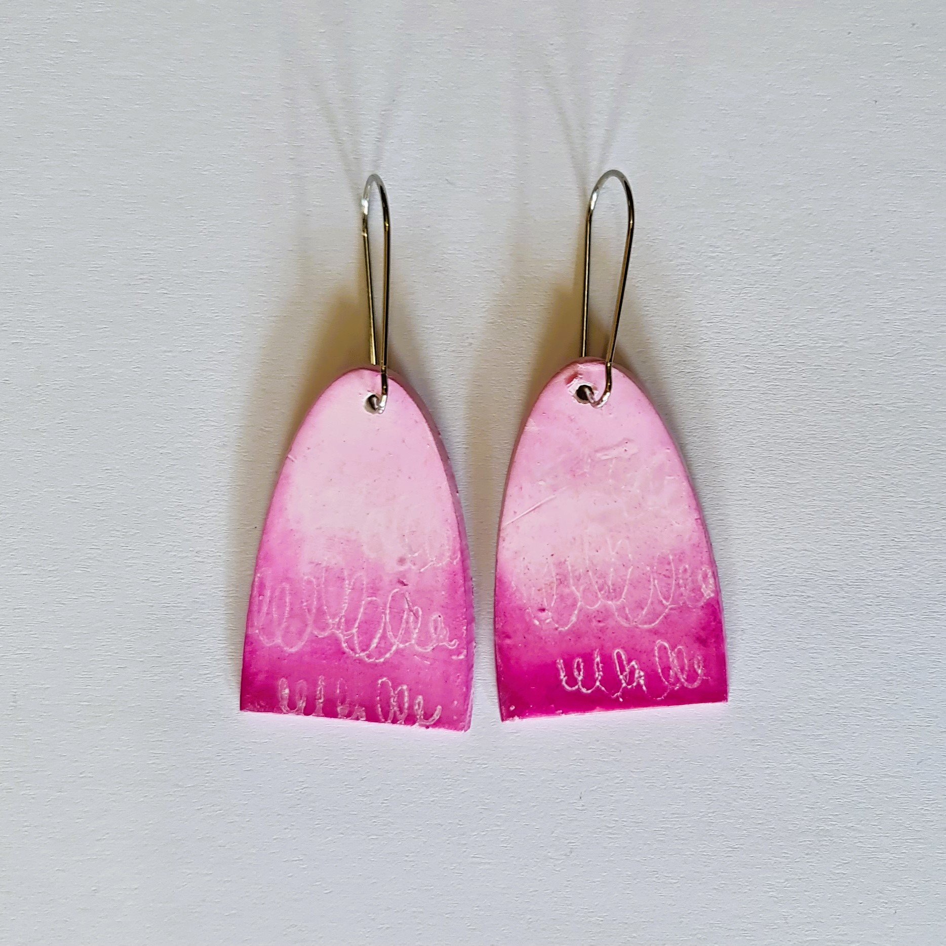 Contemporary and colourful handmade and hand painted earrings for a bit of bright and light hearted fun. Each little piece of art has layers of colour and varnished to a satin sheen.