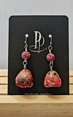 Contemporary and colourful freeform Pod earrings for a bit of light hearted fun. Each little piece of art has layers of colour and is highlited by a semi precious bead.