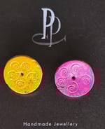 Contemporary handmade Stud Earrings for a bit of lighthearted fun. These little pieces of art are bright Summer styled in tones of Yellows and Pinks with a sprinkle of black and have been varnished to a satin sheen.