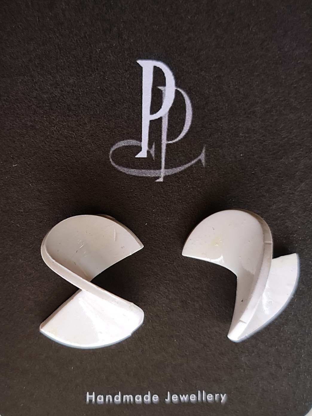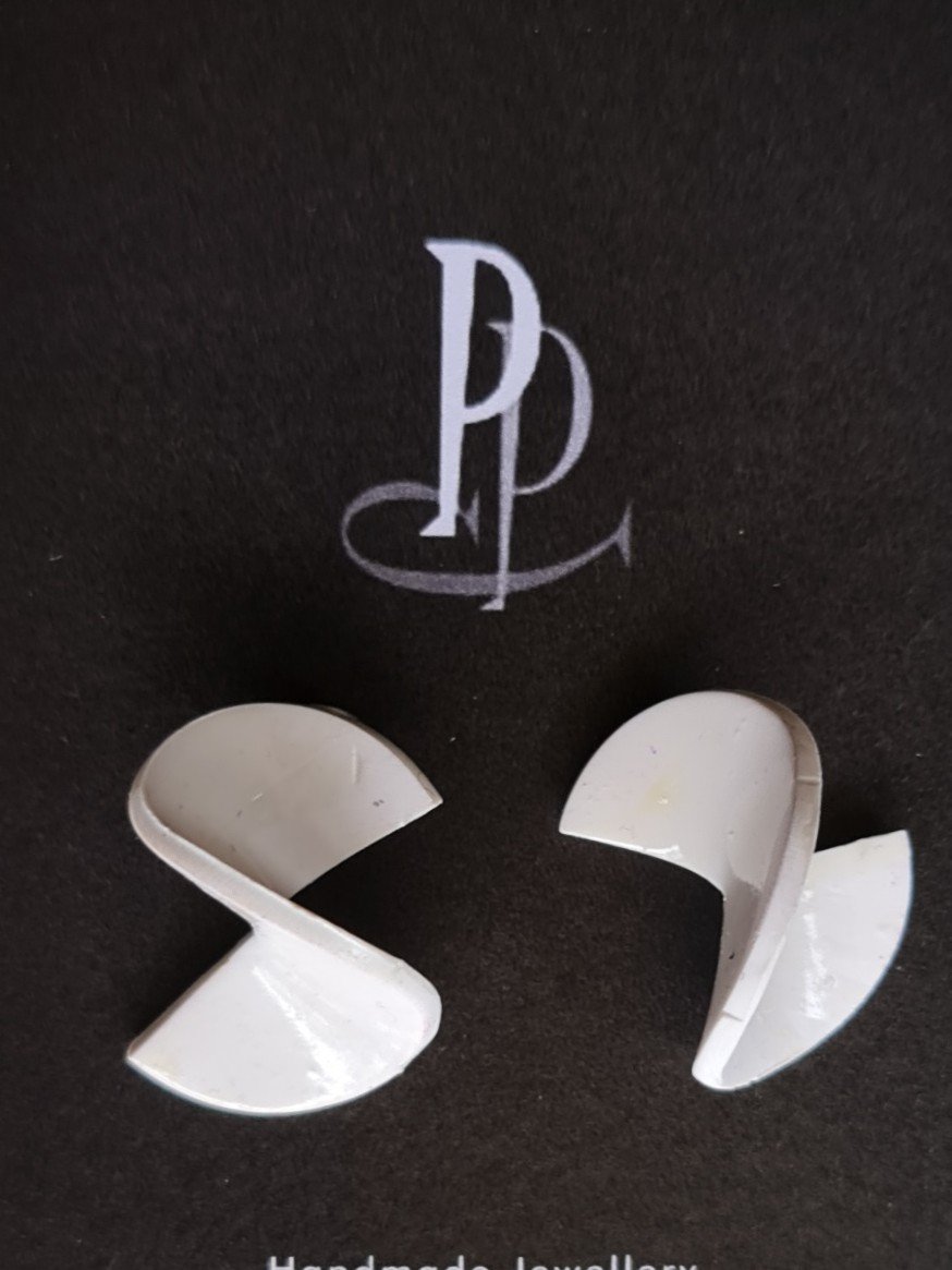 Contemporary handmade Stud Earrings for a bit of light hearted fun. These little pieces of art are White and have been varnished to a satin sheen.